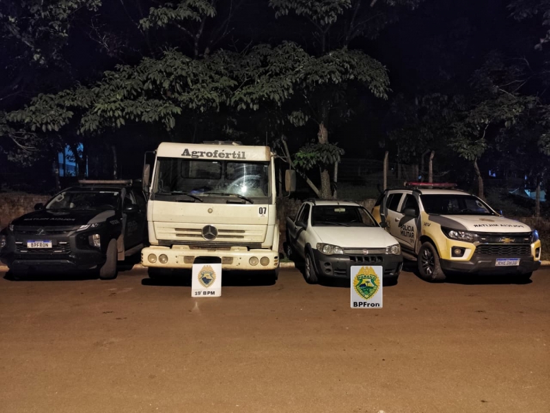 Conforme as informações divulgadas, após dados repassados pelo setor de inteligência indicando que um caminhão produto de furto estaria deslocando pela BR-163 acompanhado de um veículo que atuava como batedor, a equipe da PM iniciou patrulhamento na região.