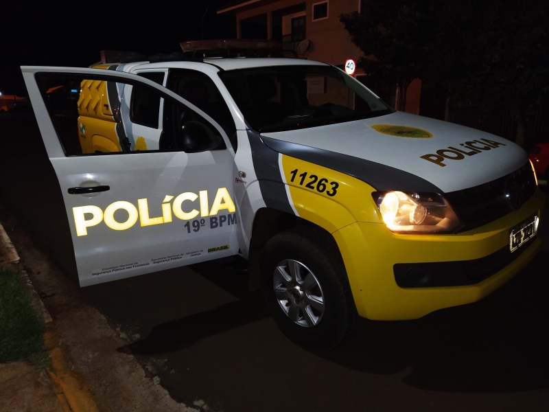 Minutos depois, por volta das 3h40, a equipe atendeu uma segunda ocorrência, desta vez em um estabelecimento localizado na Avenida Brasil. Conforme relato dos responsáveis, um homem trajando roupas escuras arremessou pedras contra a vidraça da porta de entrada, conseguindo quebrá-la e acessar o interior do comércio. No entanto, ao visualizar sua imagem refletida em um espelho interno, o autor se assustou e evadiu-se do local sem subtrair bens, sendo constatado apenas o dano material.