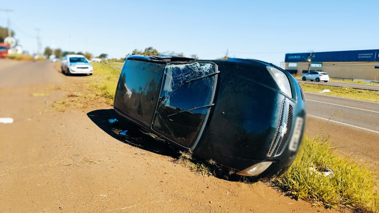 Após o ocorrido, o carro parou tombado de lado nas margens laterais da rodovia.
