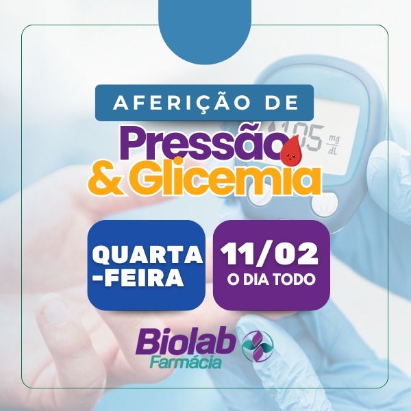 Durante todo o dia, a população poderá realizar gratuitamente a aferição da pressão arterial e da glicose, diretamente na Farmácia Biolab, localizada na Avenida João XXIII, no centro da cidade.