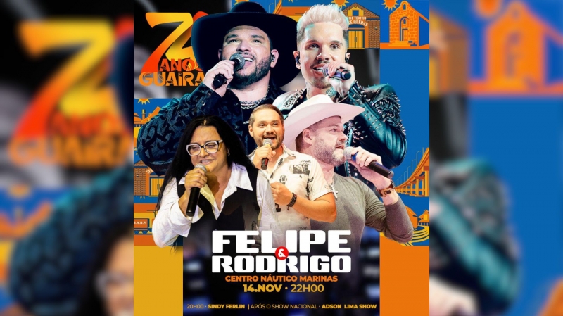 O grande presente do Município à população será o espetáculo da dupla Felipe e Rodrigo, um dos nomes mais aclamados do sertanejo atual. A dupla promete agitar a plateia com sucessos que conquistaram o país e transformar a noite em uma verdadeira festa popular.