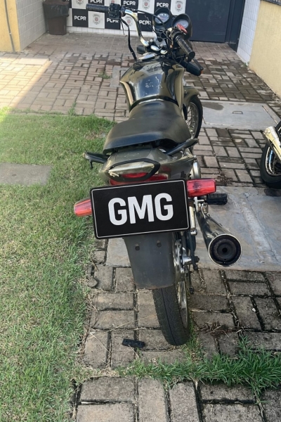 A Guarda Municipal de Guaíra recuperou uma motocicleta com registro de furto na manhã de sábado (22), durante patrulhamento preventivo no bairro Parque Hortência. A abordagem ocorreu na Rua Parigot de Souza, após a equipe perceber que o veículo transitava sem os retrovisores obrigatórios.