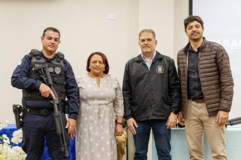 Realizado no Centro Educacional Amauri Lopes, o evento destacou a importância do investimento público responsável e da valorização daqueles que atuam diariamente na linha de frente da proteção à população. Com um investimento de aproximadamente R$ 44 mil em recursos próprios, o Município de Guaíra, pelas mãos do prefeito Gileade Osti e do secretário de Segurança Pública e Trânsito, Raymundo Castanon Andrade, entregou quatro espingardas calibre 12 ao superintendente da Guarda Municipal, como ato de fortalecimento da estrutura de resposta da corporação, que tem se destacado pelos serviços prestados à cidade.