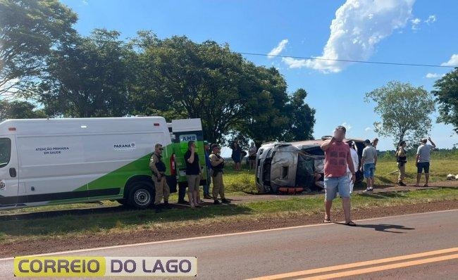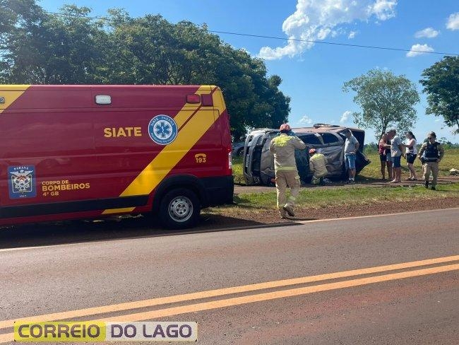Um capotamento foi registrado na tarde deste sábado (06), na PR-495, entre os municípios de Pato Bragado e Entre Rios do Oeste.