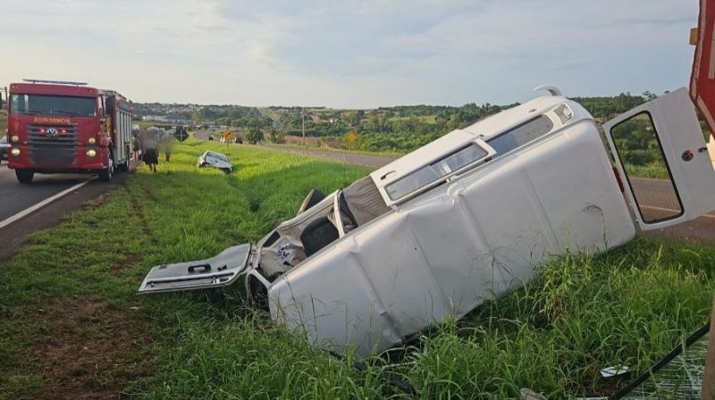 Com o impacto, a Kombi perdeu a estabilidade e tombou na pista, parando no canteiro central. O veículo transportava quatro ocupantes: três homens adultos e uma criança de 11 anos. O menino e um dos homens sofreram ferimentos leves, enquanto os outros dois adultos apresentaram lesões moderadas, incluíndo fraturas. Um deles ficou preso às ferragens.