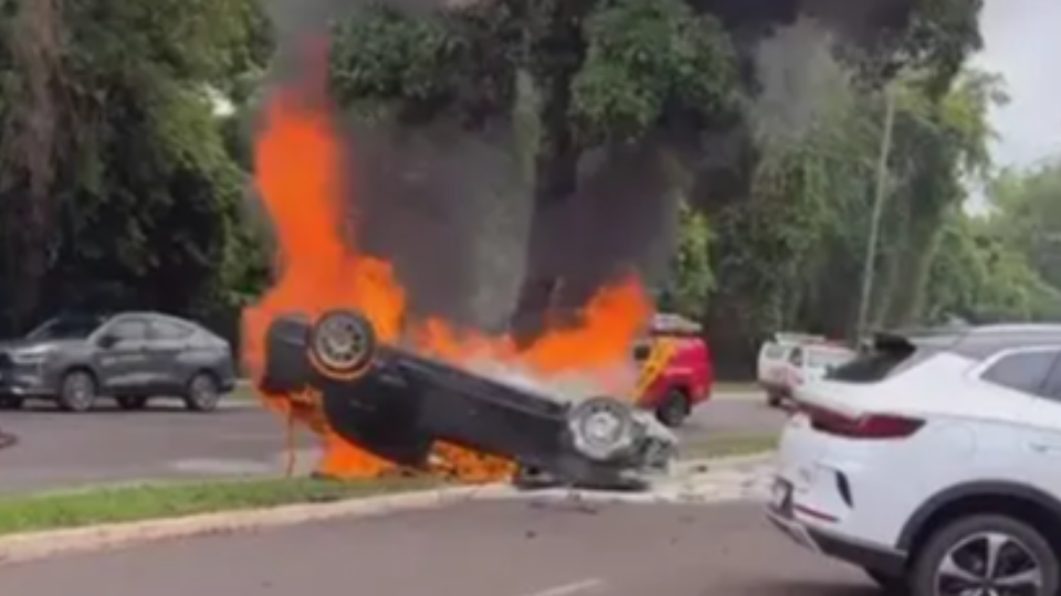 De acordo com as informações, um dos automóveis capotou e, em seguida, pegou fogo.