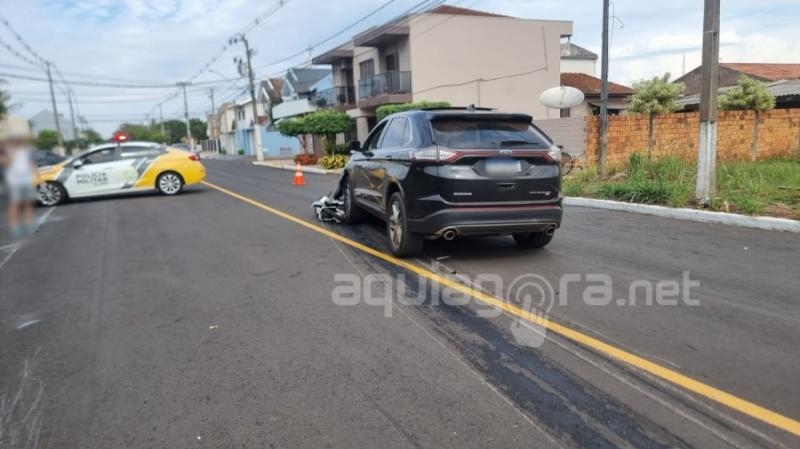 De acordo com informações, o veículo seguia pela rua Rio Grande do Norte, vindo da avenida Maripá, e a moto seguia pela rua Independência, quando houve a grave batida.