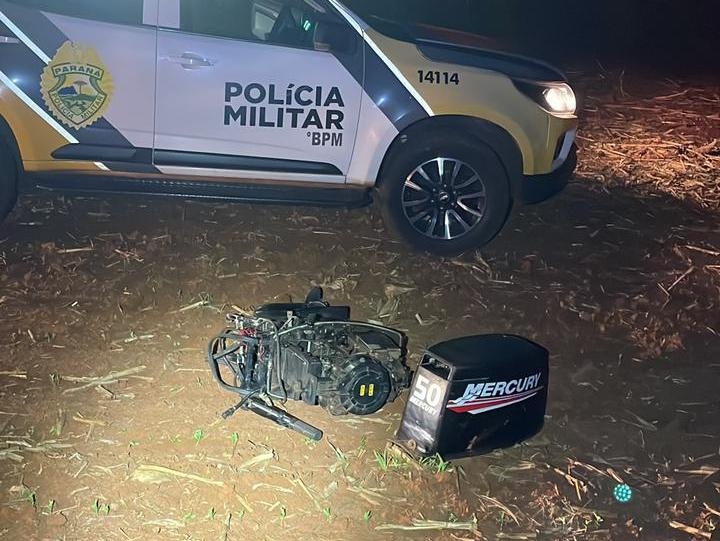 A Polícia Militar recuperou um motor de barco furtado em Guaíra na madrugada de quinta-feira (16). O caso ocorreu por volta das 00h10, após a polícia receber uma solicitação via 190 informando sobre um furto em uma residência.