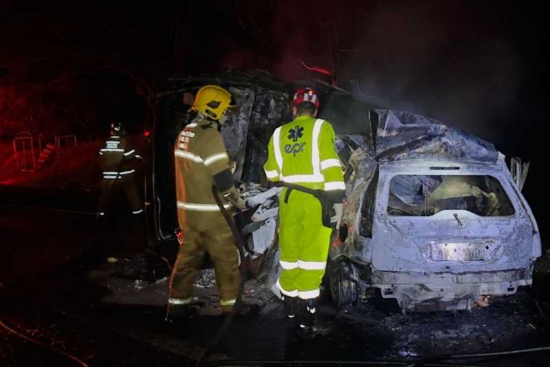 Equipes do Corpo de Bombeiros atuaram no combate às chamas e no resgate, com apoio da concessionária responsável pelo trecho e da Polícia Rodoviária Estadual e Militar.