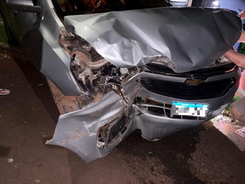 Com o impacto, a dianteira do GM/Cobalt ficou destruída.