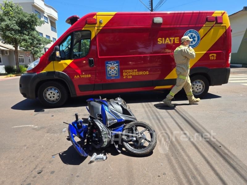 Um gravíssimo acidente de trânsito foi registrado por volta das 13h50 no centro de Marechal Cândido Rondon. Uma jovem de 28 anos sofreu ferimentos graves.