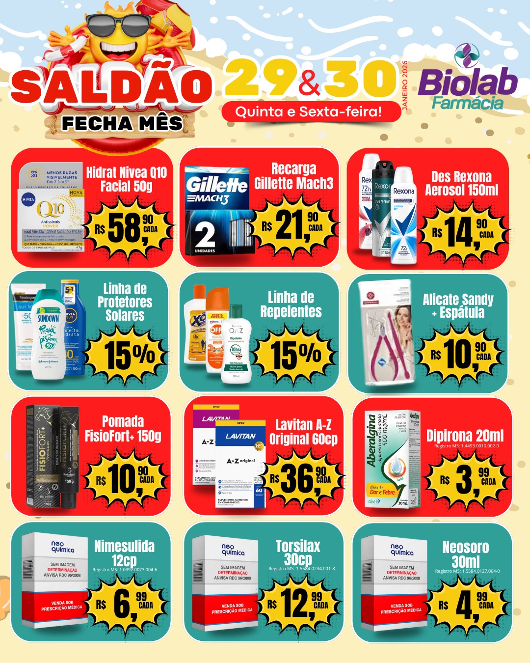 A Farmácia Biolab iniciou o primeiro Saldão Fecha Mês de 2026, com muitas promoções.