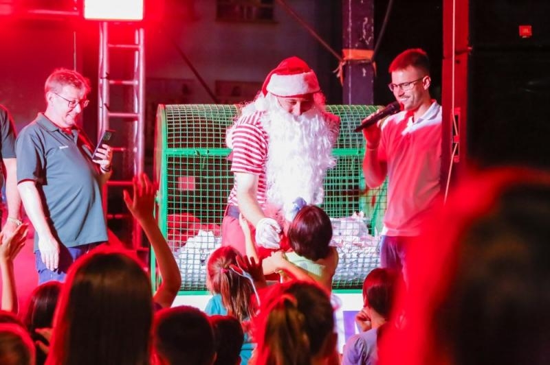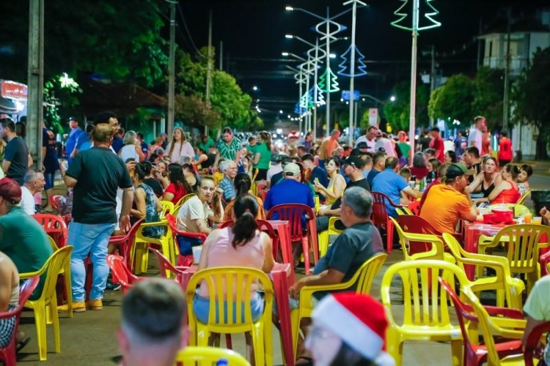 Centenas de pessoas participaram, nesta segunda-feira (22), da Noite Alusiva ao Comércio, em Mercedes. O evento movimentou a Praça Central e ofereceu uma programação diversificada, com passeios nos Trenzinhos da Alegria, brinquedos infláveis para as crianças, show ao vivo, praça de alimentação, entrega de doces pelo Papai Noel e o sorteio da Campanha de Natal da Associação Comercial e Empresarial de Mercedes (Acim).