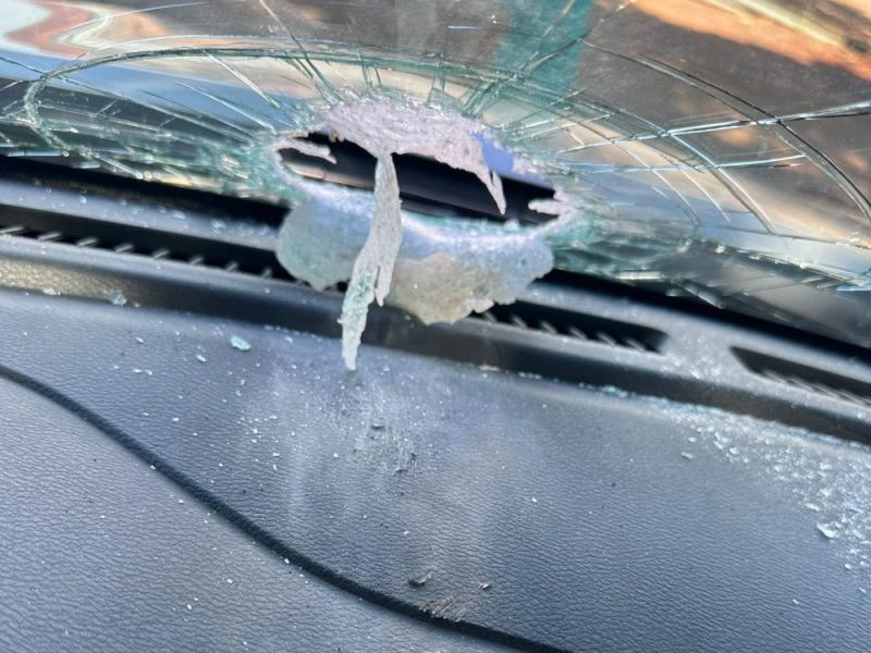 O objeto atingiu violentamente o para-brisa, atravessando o mesmo. A pedra ainda atingiu a cabeça da passageira do banco da frente, de 29 anos, deixando ferimentos leves. No veículo também estavam o motorista e uma criança, que felizmente não se feriram.