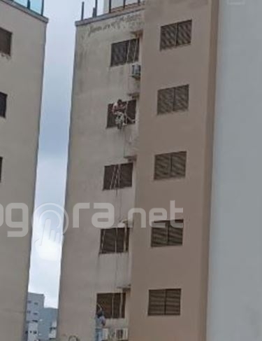 Com o auxílio de outro trabalhador, o homem mesmo ferido, conseguiu baixar a corda e desce até piso do andar social do prédio.