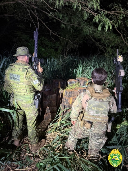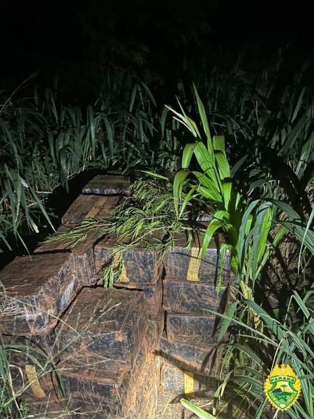As equipes policiais foram até a localidade após receberem uma denúncia anônima sobre movimentações suspeitas na região. Durante as buscas na vegetação ciliar (próxima a rios), os agentes encontraram diversos fardos de maconha abandonados.