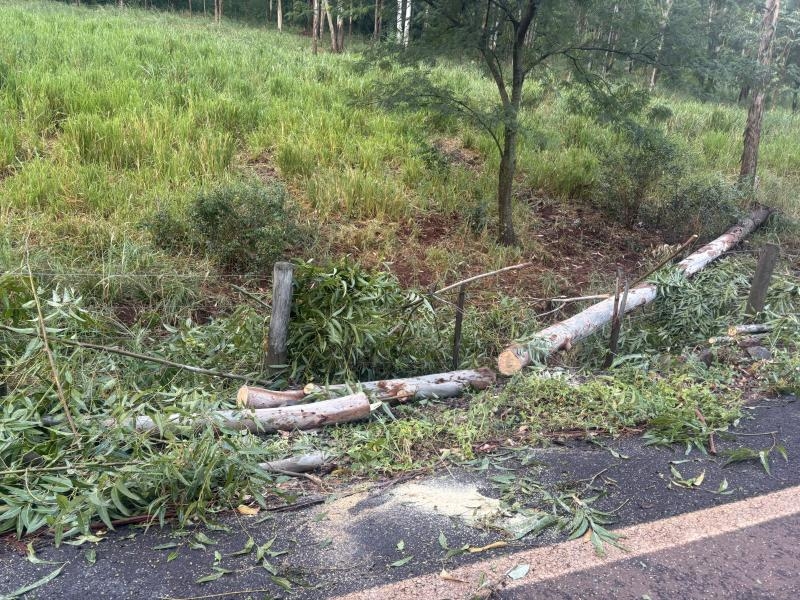 A chuva, acompanhada de fortes rajadas de vento, derrubou várias árvores. Algumas caíram sobre as estradas que ligam Mercedes à Três Irmãs e também ao Arroio Guaçu.