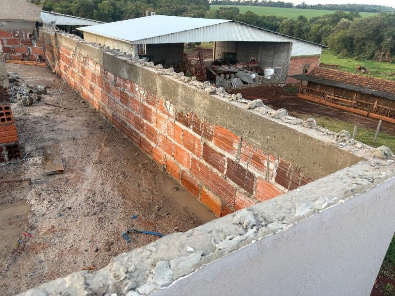 Ainda na mesma propriedade rural, a força dos ventos derrubou a parede de um barracão sobre máquinas agrícolas, deixando danos na plantadeira e pulverizador.