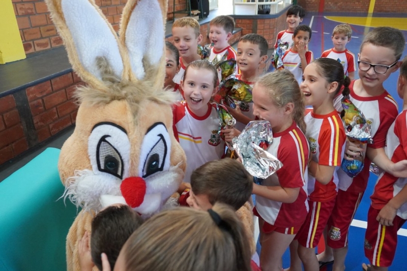 A distribuição aconteceu em todas as escolas municipais e contou com a presença do prefeito Laerton Weber, da primeira-dama e presidente do Provopar, Lizandra Weber, do vice-prefeito Alex Graunke, além da participação especial do coelho da Páscoa, que ajudou a levar ainda mais alegria às crianças.