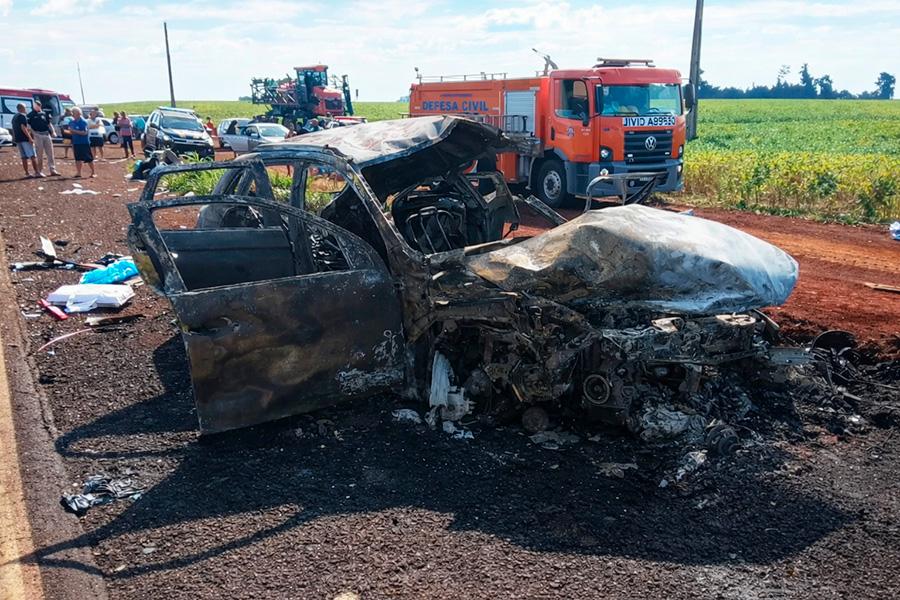 De acordo com as informações apuradas no local, o automóvel Mitsubishi seguia no sentido Cascavel a Campo Mourão quando durante uma ultrapassagem, ocorreu a colisão envolvendo os três caminhões. Após o impacto, o veículo de passeio pegou fogo e o motorista morreu no local.