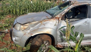 Capotamento impressionante destrói caminhonete na PR-488 em Santa Helena