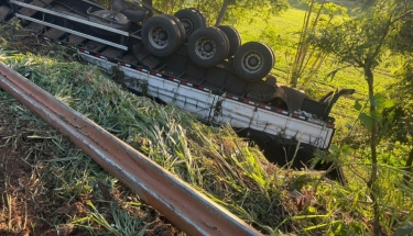 Carreta tomba na BR-163 em Mercedes e condutor fica ferido