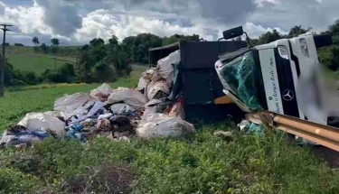 Caminhão caçamba tomba às margens da BR 163 em Cascavel