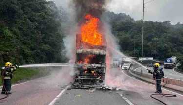 Caminhão pega fogo e carga de cerveja é saqueada na BR-376