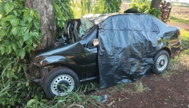 Carro fica destruído e deixa motorista ferido em acidente entre Marechal e Porto Mendes