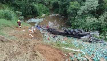 Motorista morre após caminhão carregado com cervejas capotar e afundar em rio no Paraná