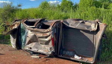 Caminhonete fica completamente destruída após capotamento entre Cascavel e Toledo