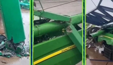 Vendaval derruba barracão em Entre Rios do Oeste; Granizo também foi registrado