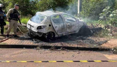 Carro desce rua em chamas e homem é encontrado carbonizado dentro do veículo em Cascavel