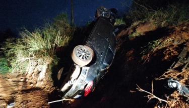 Grave acidente - Carro com idosos cai em córrego em Guaíra