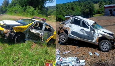 Acidente envolvendo viatura da PM e carro com cigarros deixa dois feridos