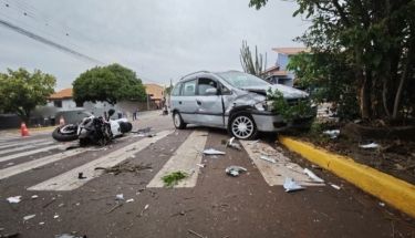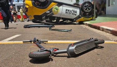 Viatura da PM capota após colisão no Centro de Toledo e atinge jovem em patinete