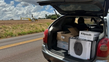 Com apoio de helicóptero, PM apreende carro com contrabando em Toledo