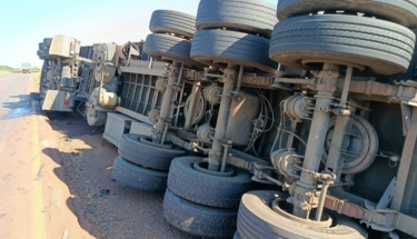 Carreta tomba na BR-163 em Toledo após motorista cochilar ao volante