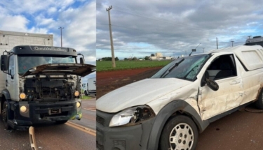 Colisão envolvendo carro e picape deixa homem ferido no trevo de Maripá