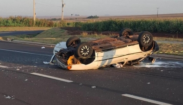 Capotamento em trevo deixa uma pessoa morta e dois feridos graves em Palotina