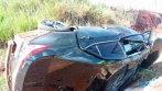 Carro fica destruído em capotamento na BR 163 em Cascavel