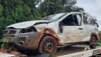 Fiat Strada capota após acidente na BR-369 em Cascavel