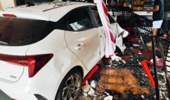 Carro e moto invadem comércio após acidente e homem tem pé amputado, em Cascavel