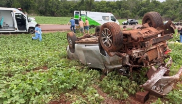 Carro capota em trecho em obras em Alto Santa Fé, Nova Santa Rosa
