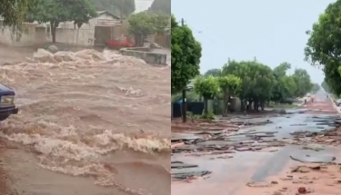 Ruas viram 'rios' e água arranca asfalto em Altônia durante temporal