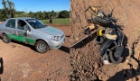 A colisão ocorreu quando o condutor do Siena fez uma conversão para acessar uma estrada rural. Cortou a frente da motocicleta, com placas paraguaias, e a colisão foi inevitável.