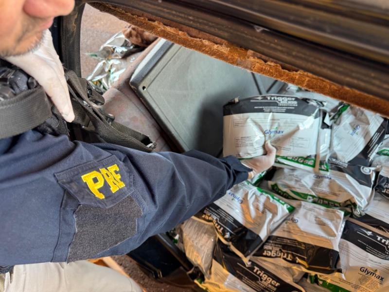 Ainda conforme a PRF, ahama a atenção o fato de o veículo estar equipado com uma antena de internet via satélite em pleno funcionamento, instalada sobre o painel, prática comumente utilizada para facilitar a comunicação durante o transporte do ilícito.