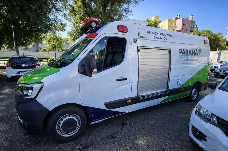 A ambulância estava estacionada na Avenida Vicente Machado, 1280, após realizar a transferência de um paciente de Pontal do Sul.