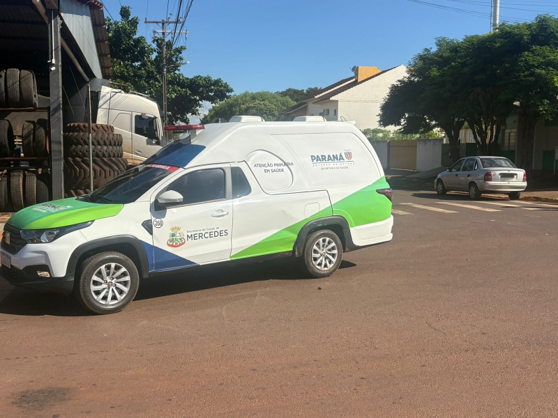Um ambulância do município de Mercedes se envolveu em um acidente na tarde deste sábado (28), no centro da cidade.