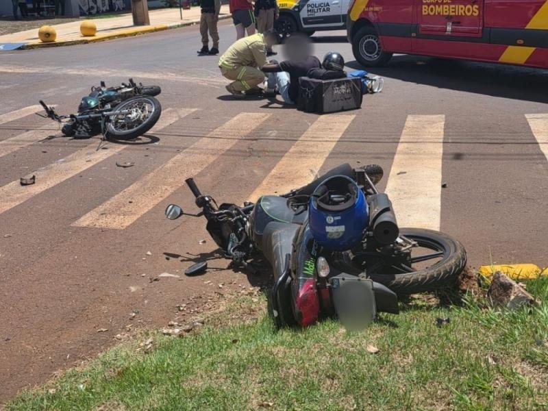 A Mottu Sport seguia pela Avenida, em direção ao Jardim Santa Maria, quando houve a colisão com a Titian, que estava na João Orestes Ruaro, acabou invadindo a preferencial. Com o impacto, ambos sofreram queda e ficaram feridos.